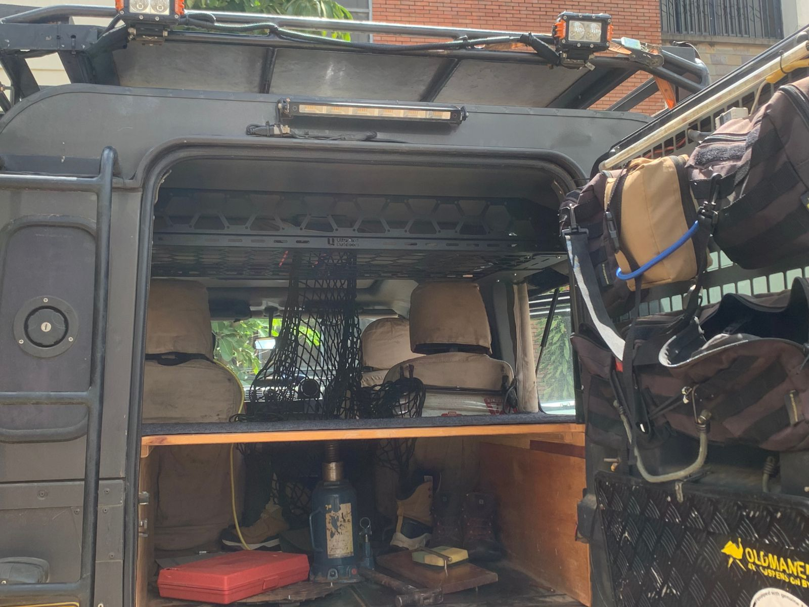 A slimline roof shelf designed to reclaim wasted vertical space inside your vehicle. Perfect for organising lightweight essentials while keeping them secure, quiet, and easy to access. Features a MOLLE compatible design, drill free installation, and a strong yet lightweight build engineered for long term use in tough Kenyan conditions.